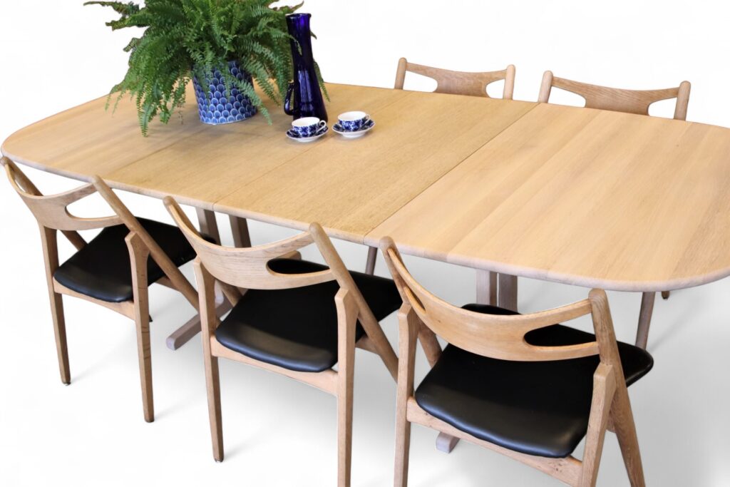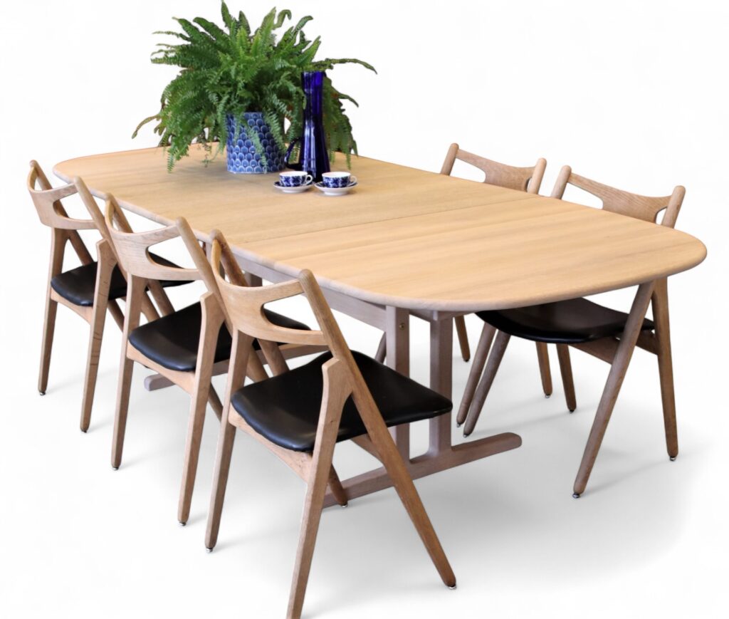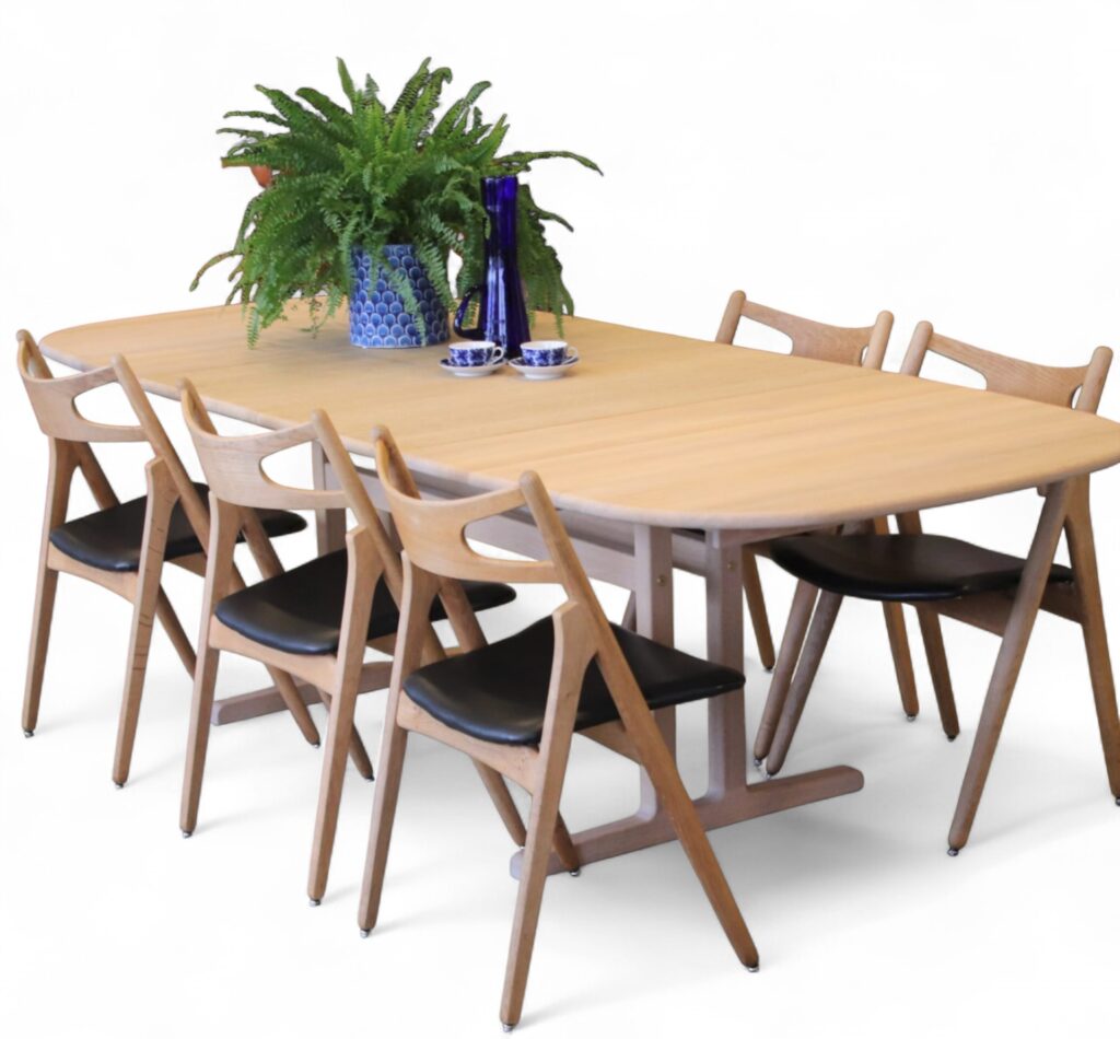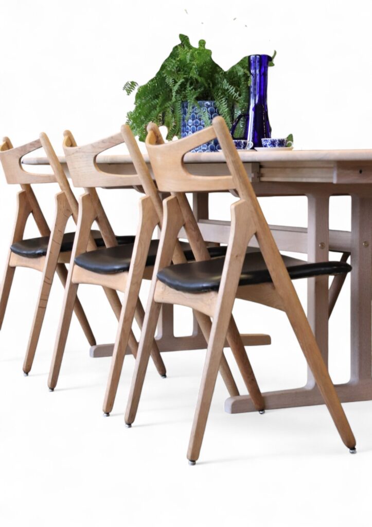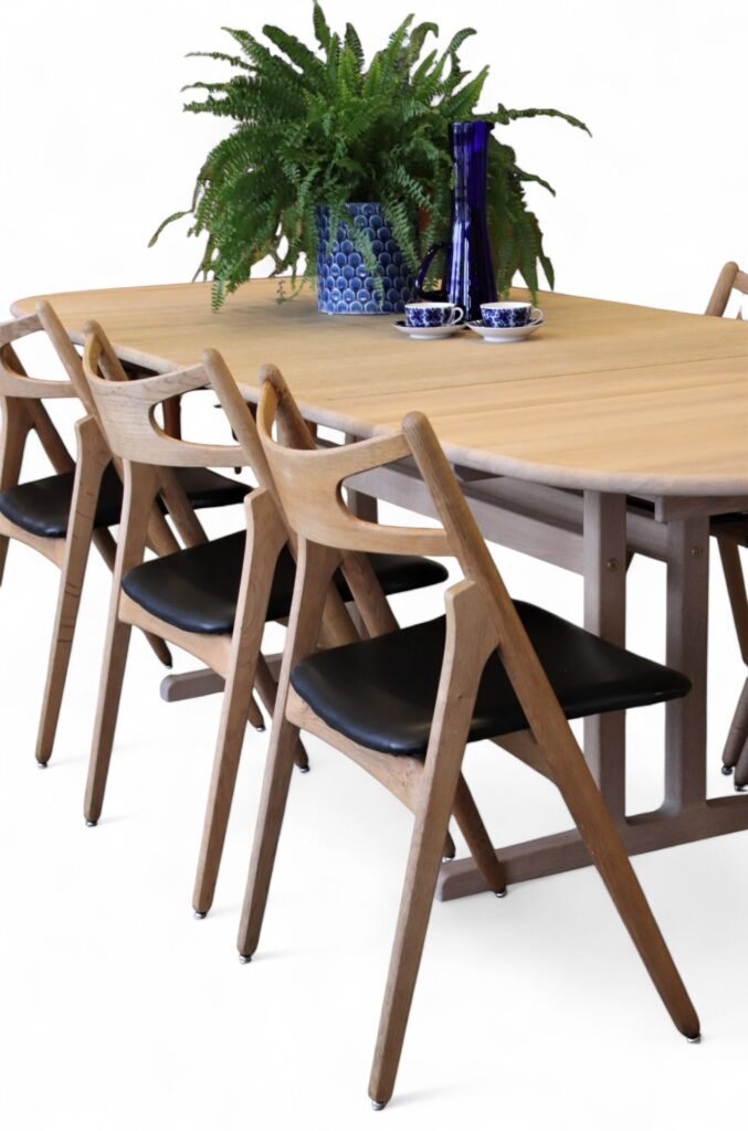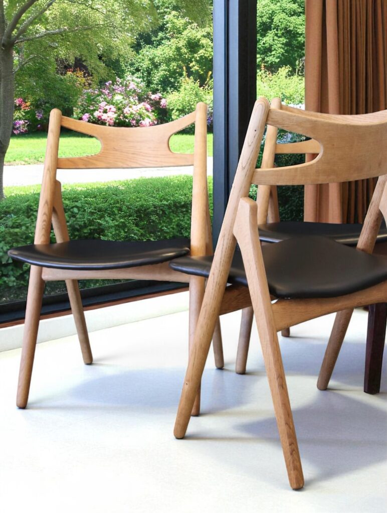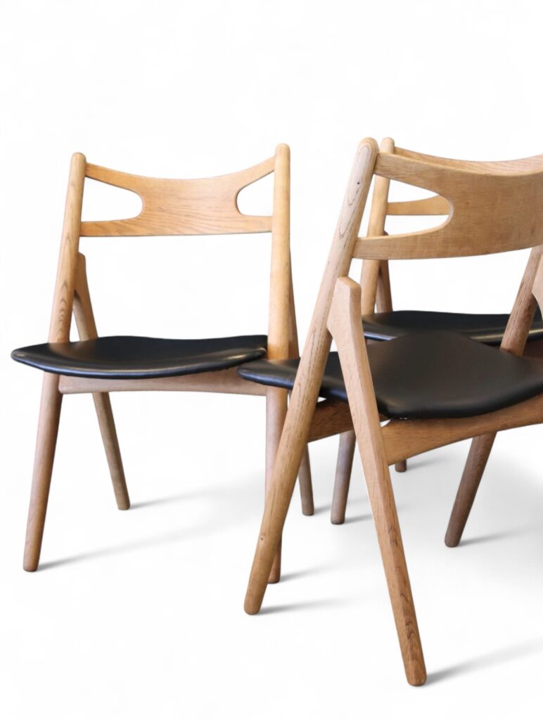 CH29 från Carl Hansen i Danmark är en ikonisk stol som formgavs redan 1952 av den världsberömda och mästerliga arkitekten Hans J. Wegner. En fantastisk stol, som i de här exemplaren är tillverkad av ek, är också känd under namnet Sågbocken, vilket tydligt reflekterar dess unika design och funktionalitet. Wegners designfilosofi kombinerar estetik med komfort, vilket resulterar i en stol som inte bara är vacker att se på, utan också erbjuder en exceptionell sittupplevelse.