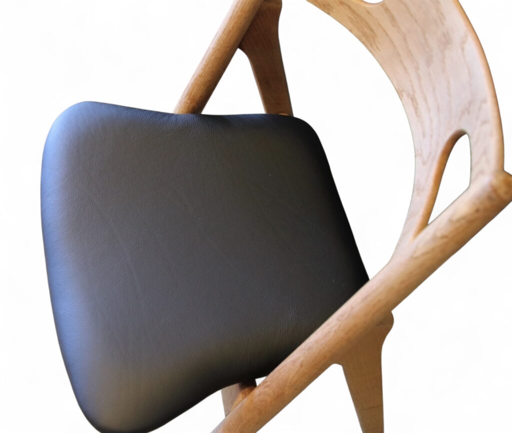 Stolen är helt i ek och har en sits som är omklädd i tyg eller skinn. Det är en fantastisk konstruktion som ser väldigt enkel ut, men den döljer en mycket avancerad design och teknik som ger en extremt bekväm stol! Den genomtänkta konstruktionen gör stolen dessutom väldigt stadig och stabil, vilket påminner om Wegners ikoniska fåtölj CH28, som stolen är nära besläktad med. Den eleganta estetiken kombinerat med den robusta funktionen gör denna stol till en utmärkt möbel som kompletterar varje rum i hemmet.
