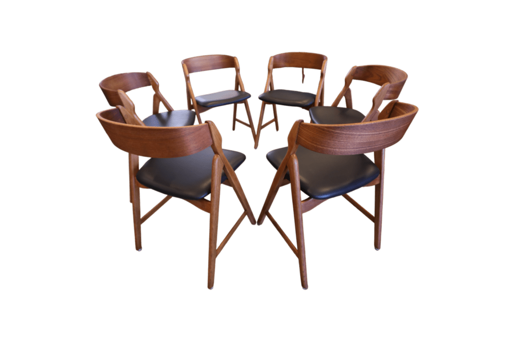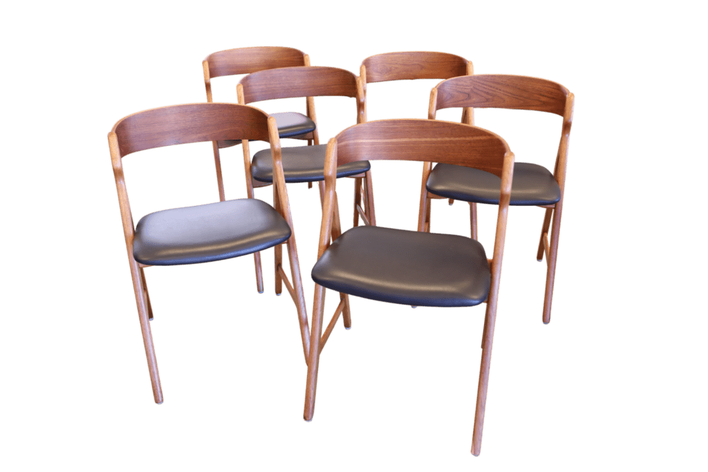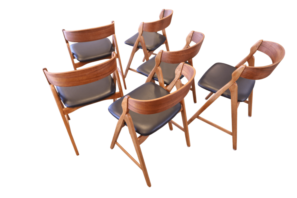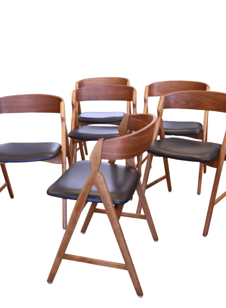 Ett set om sex magiska stolar formgivna av den Henning Kjærnulf för Boltinge Stolefabrik i Danmark. Stolarna har ett mycket kaxigt uttryck som verkligen sätter sin prägel i rummet. Stolens design och karaktär gör att de är så mycket mer än bara en enkel stol; de fungerar även som en iögonfallande inredningsdetalj som förhöjer atmosfären i vilket rum som helst!
