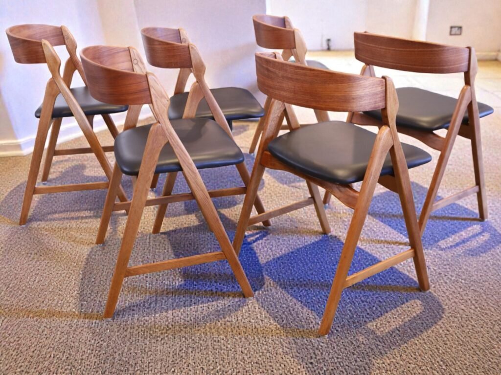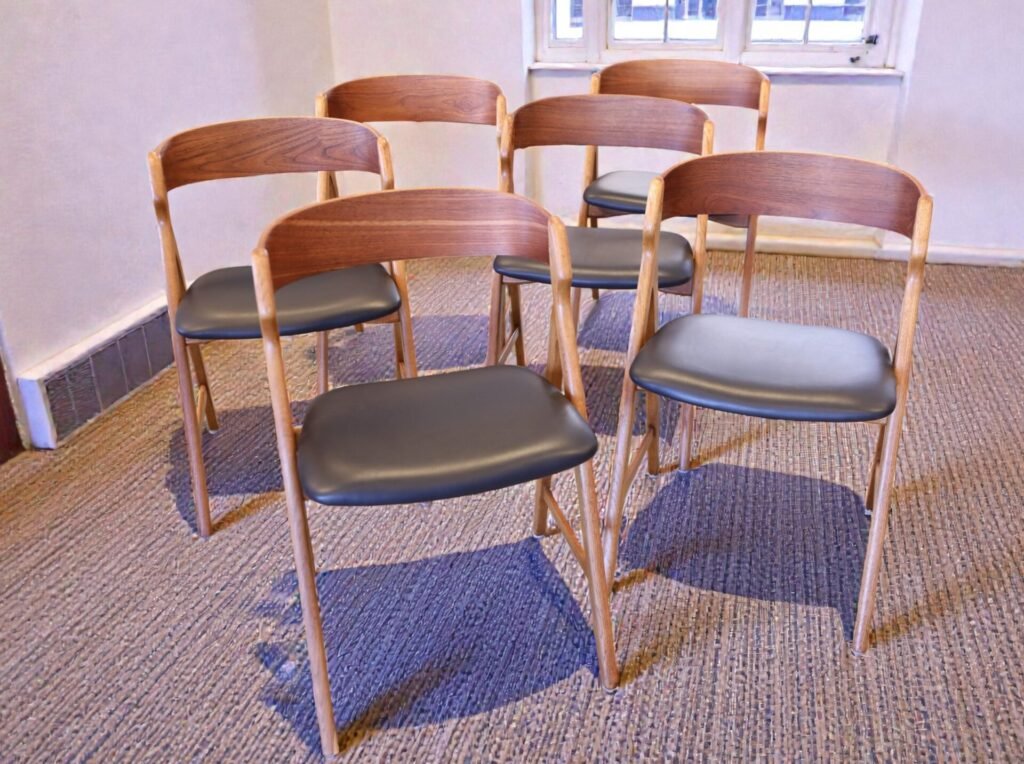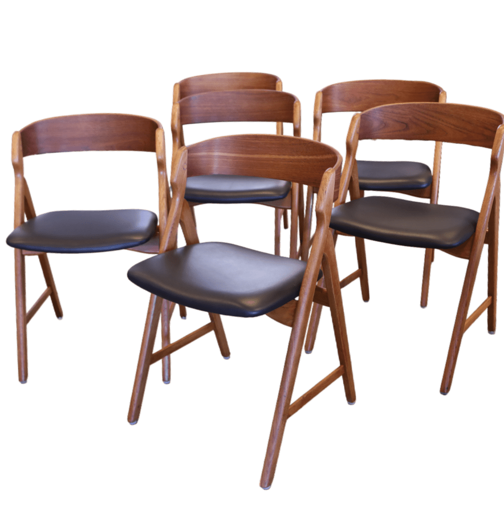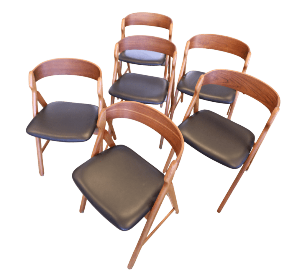 Ett set om sex magiska stolar formgivna av den Henning Kjærnulf för Boltinge Stolefabrik i Danmark. Stolarna har ett mycket kaxigt uttryck som verkligen sätter sin prägel i rummet. Stolens design och karaktär gör att de är så mycket mer än bara en enkel stol; de fungerar även som en iögonfallande inredningsdetalj som förhöjer atmosfären i vilket rum som helst!
