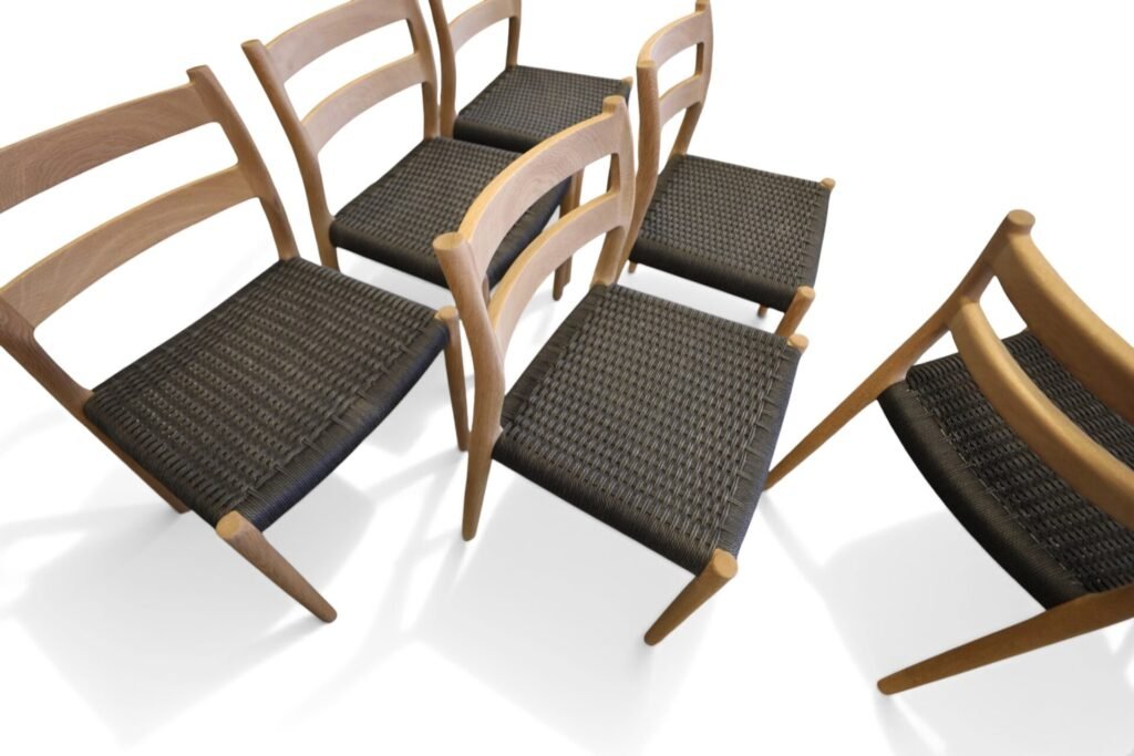 En tidlös och elegant stol i massiv ek med en fantastisk formgivning som verkligen gör sig runt matbordet. Den ljusa eken tillsammans med den svarta, flätade sitsen skapar en vacker kontrast som är så typisk för dansk design 🌿