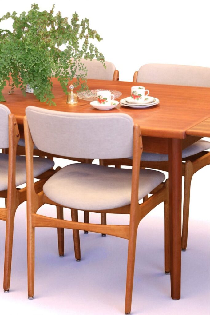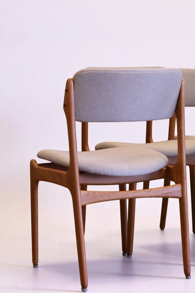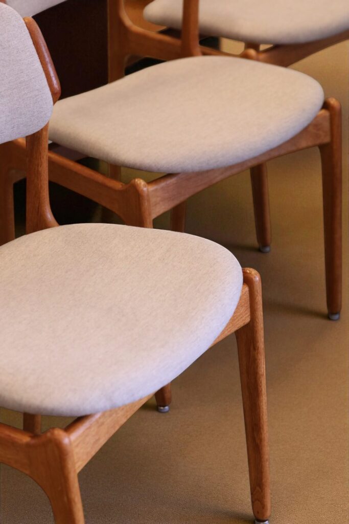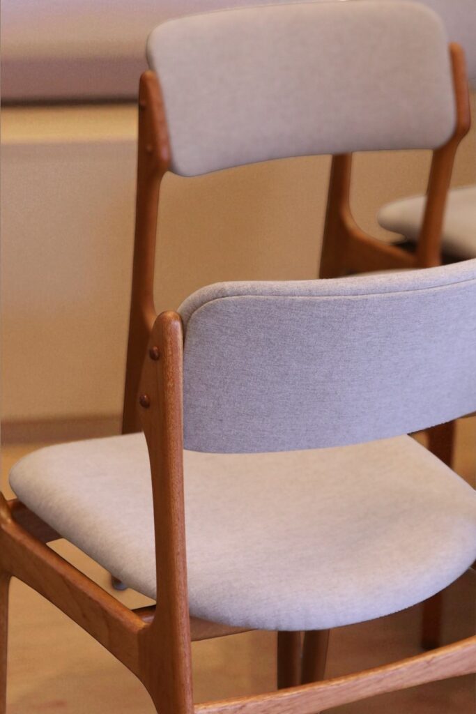 Stol i teak formgiven av den store stolsmästaren Erik Buch för Oddense Maskinsnedkeri A/S i Danmark.