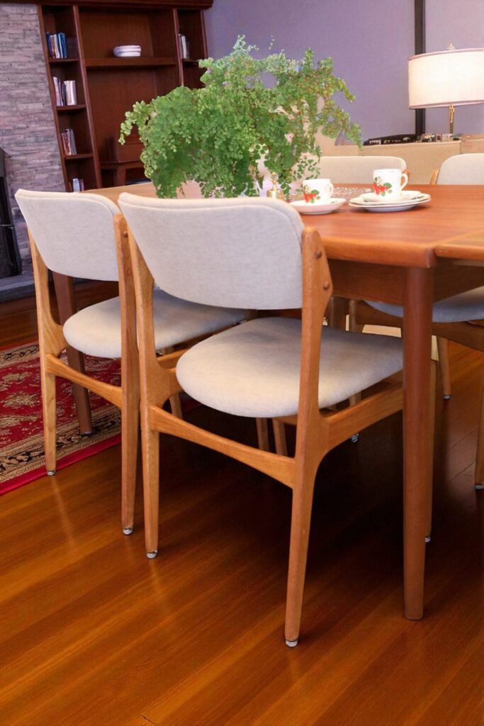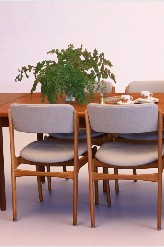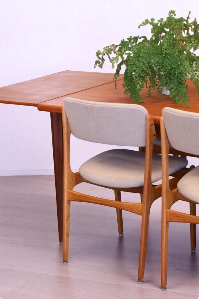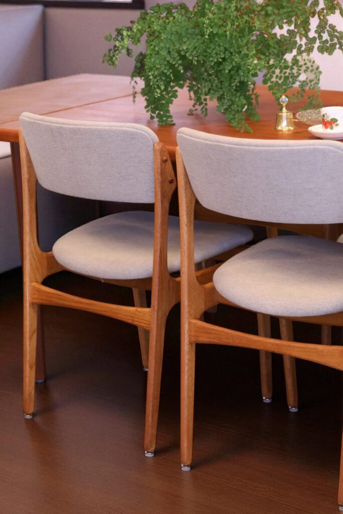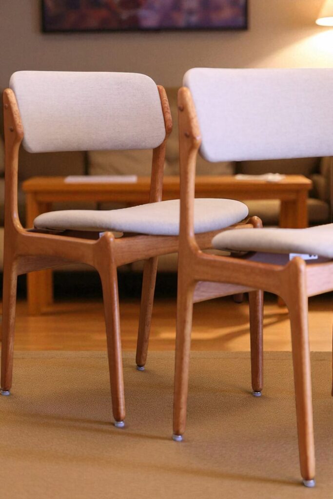 Stol i teak formgiven av den store stolsmästaren Erik Buch för Oddense Maskinsnedkeri A/S i Danmark.