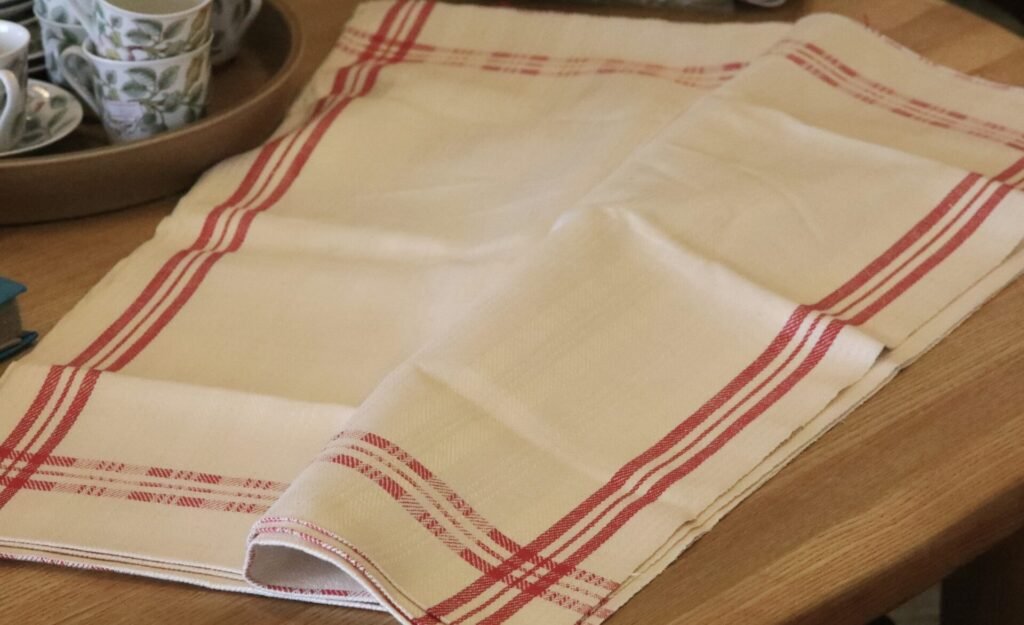 En bunt med oklippta handdukar i hellinne med en underbar tyngd och lyster. Handdukarna har den höga kvalitén som köks- och kärlanddukar hade förr, vilket gör dem både funktionella och stiliga i ditt hem.